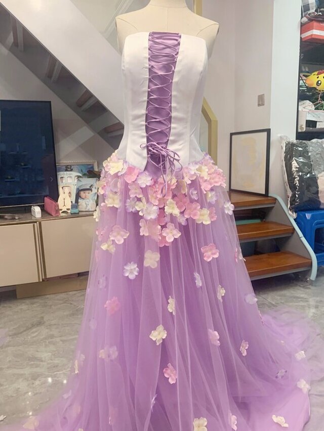 大きなリボン 花びら付き カラードレス パープル系 ウエディングドレス Iichi ハンドメイド クラフト作品 手仕事品の通販